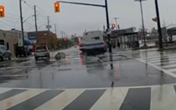 On Thursday, April 16, 2026, at approximately 2:10 pm, a 60-year-old female pedestrian was walking through the crosswalk on a green light at Vidal Street and George Street in the City of Sarnia. As she crossed, a vehicle turned left through the crosswalk and struck her. She was treated at the scene.
