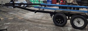The stolen boat trailer is described as a 26 foot duel axle trailer with bright blue bunks. It has two white rims on the passenger side and one black and one white rim on the driver’s side. The trailer is also equipped with two jacks fixed to the front.
